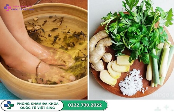 Cách thực hiện: Cần chuẩn bị các nguyên liệu như lá lốt, ngải cứu, gừng, xả, muối hạt. Tất cả nguyên liệu rửa sạch, đập dập (với gừng, sả) đau đó đun sôi với 2 – 3 lít nước khoảng 15 phút. Để ấm rồi ngâm chân trong khoảng 15 – 20 phút, có thể thực hiện 4 – 5 lần/tuần để gia tăng hiệu quả.