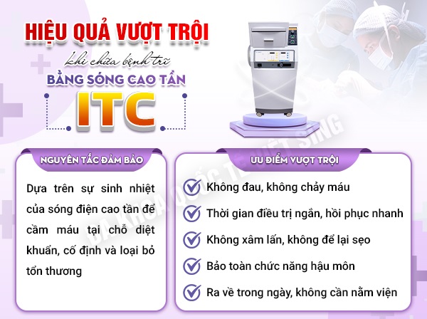 - Phẫu thuật: Nó thường được chỉ định cho những bệnh nhân bị trĩ lòi ra ngoài ở mức độ nặng nề mà các phương pháp điều trị khác không hiệu quả. Hiện nay, có rất nhiều công nghệ cắt trĩ khác nhau được áp dụng như Longo, Plasma,… nhưng được đánh giá cao là công nghệ cắt trĩ bằng sóng cao tần ITC với hiệu quả chính xác, mức độ xâm lấn thấp nên khả năng hồi phục nhanh. Phương pháp này đang được áp dụng độc quyền tại phòng khám Đa khoa Quốc tế Việt Sing – Địa chỉ khám chữa bệnh hậu môn trực tràng uy tín tại Bắc Ninh.