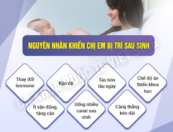 Trĩ sau sinh là tình trạng khá phổ biến ở phụ nữ, đặc biệt là sau khi sinh thường. Nguyên nhân chủ yếu xuất phát từ sự thay đổi trong cơ thể và áp lực lên vùng hậu môn – trực tràng trong thời gian mang thai và sinh nở.
