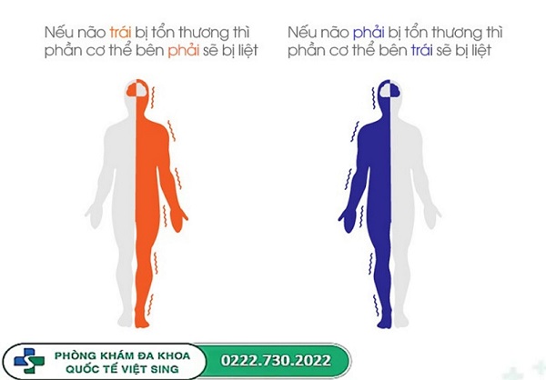 Khi vùng não điều khiển vận động bị tổn thương, tín hiệu từ não không thể truyền xuống cơ thể, dẫn đến tình trạng liệt tay – chân cùng bên; méo miệng, nói khó hay rối loạn nuốt, suy giảm nhận thức.