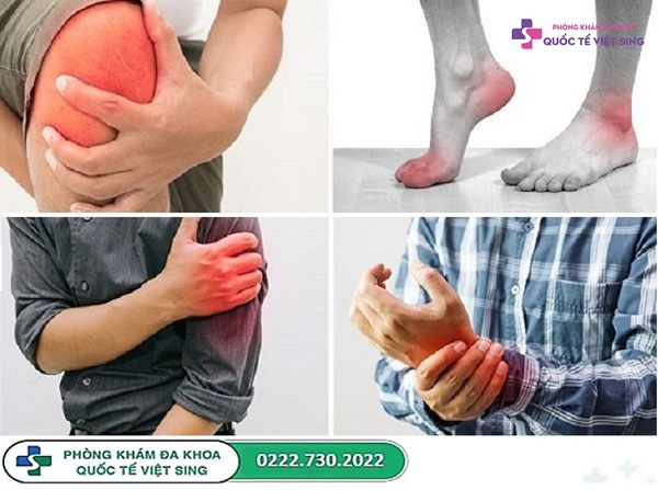 - Đau nhức tại các khớp như gối, vai, cổ tay, cổ chân