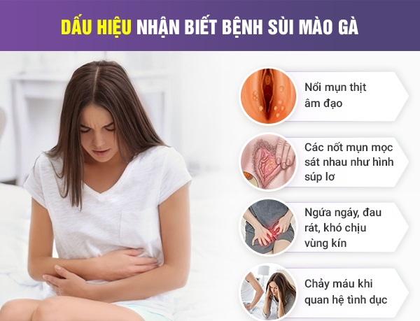 Sùi mào gà là do virus HPV (Human Papilloma Virus) gây ra, chủ yếu là các chủng HPV type 6 và 11. Các dấu hiệu của bệnh sùi mào gà bao gồm những mụn cóc, hạt cơm, u nhú hoặc tổn thương phẳng, mềm, có màu hồng nhạt, có chân hoặc có cuống, không đau và dễ chảy máu.