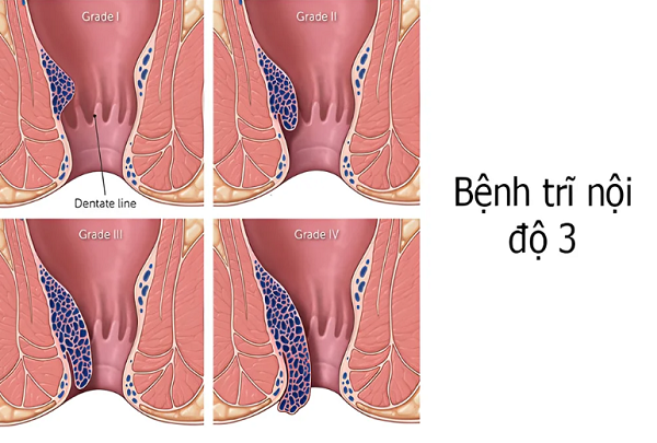 Trĩ nội độ 3 là giai đoạn nặng của bệnh trĩ nội, khi búi trĩ đã sa ra ngoài hậu môn và không thể tự co lại, phải dùng tay đẩy vào. Ở thời điểm này, bệnh không chỉ gây đau rát, chảy máu mà còn tiềm ẩn nhiều biến chứng nguy hiểm nếu chậm điều trị.