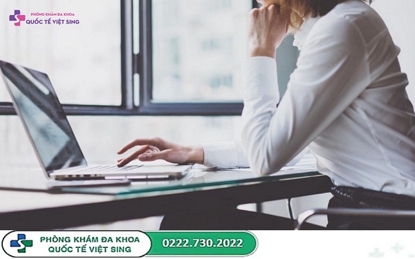 - Ngồi gù lưng, cúi người về phía trước: Tư thế này thường gặp khi làm việc với máy tính hoặc sử dụng điện thoại. Làm dồn trọng lực về phía hậu môn, làm tăng áp lực lên búi trĩ và gây đau lưng, mỏi vai gáy kèm theo.