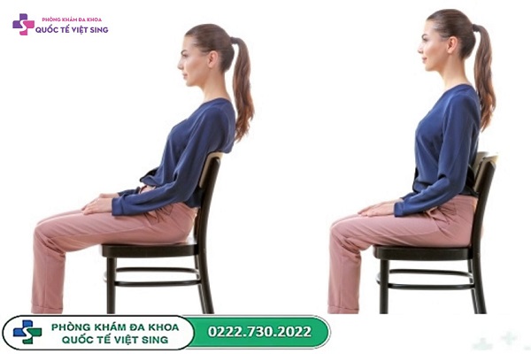 - Giữ tư thế ngồi đúng: Luôn ngồi thẳng lưng, hai chân đặt vững trên sàn; tránh ngồi lệch hoặc dồn trọng lực về một bên mông.